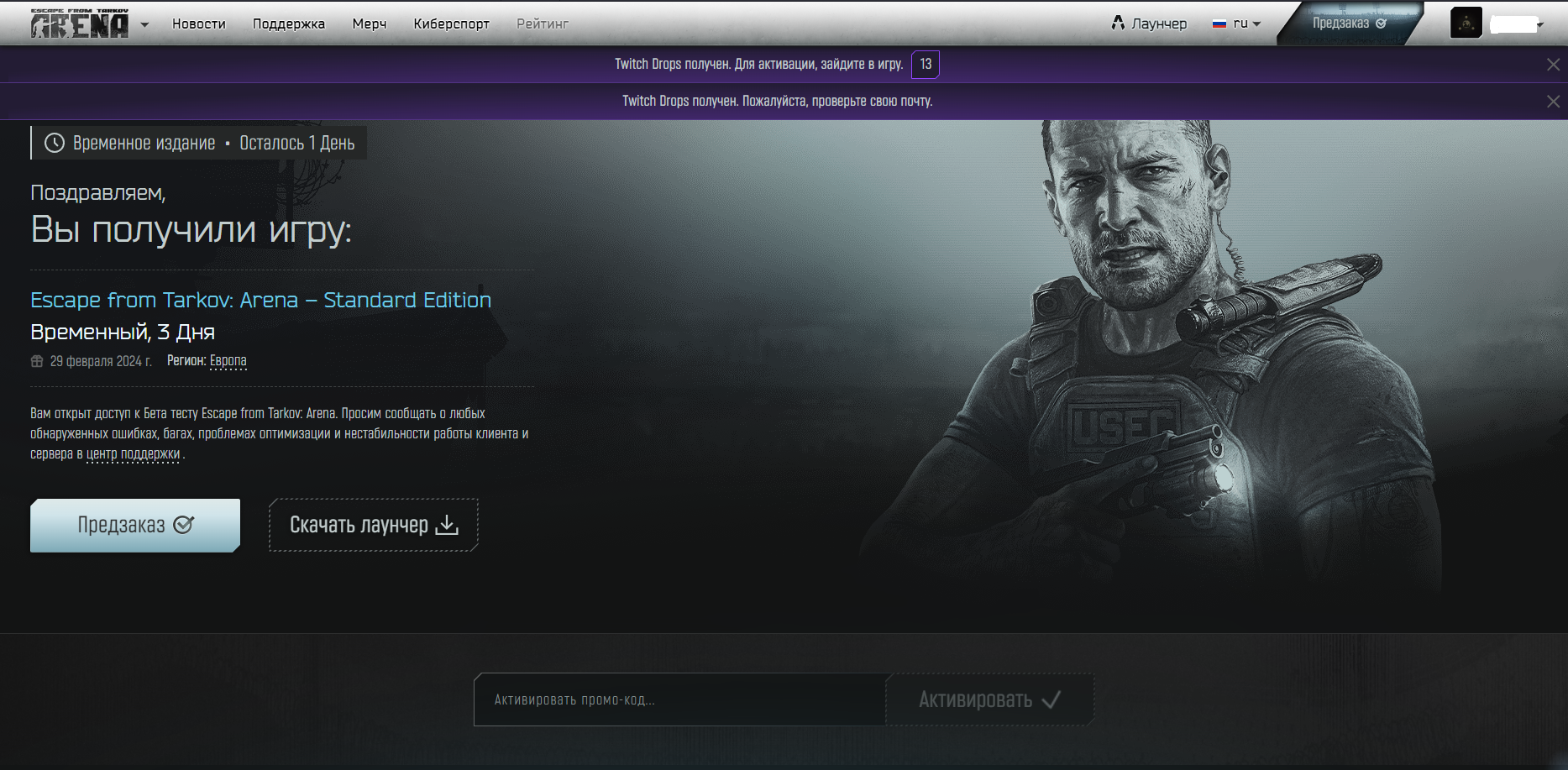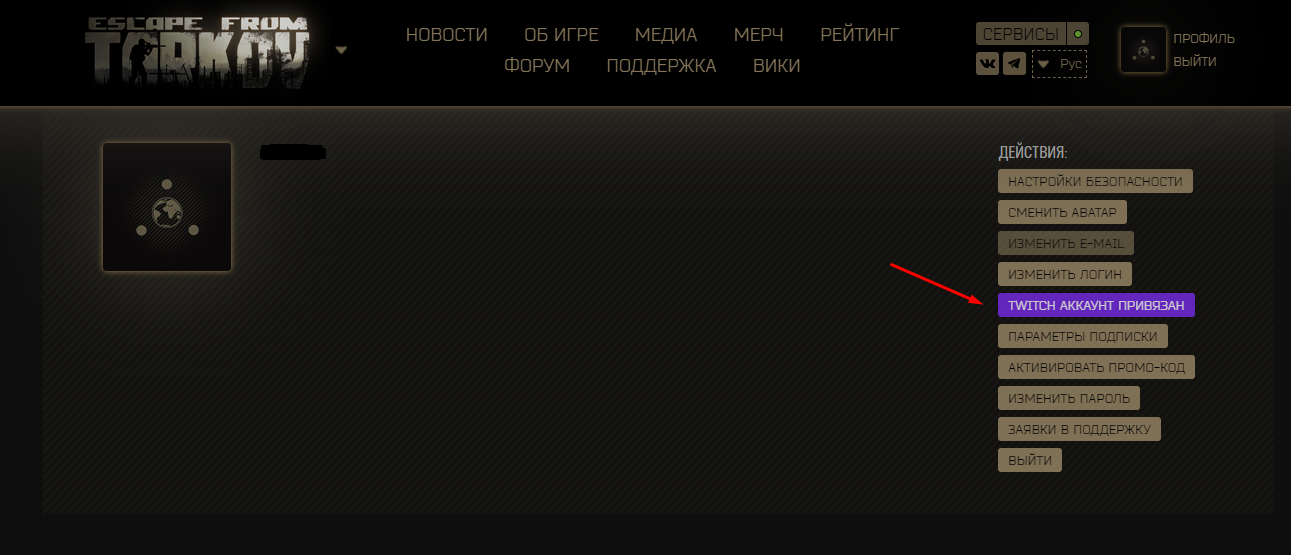Далее переходите на сайт игры, входите в аккаунт и привязываете Twitch.