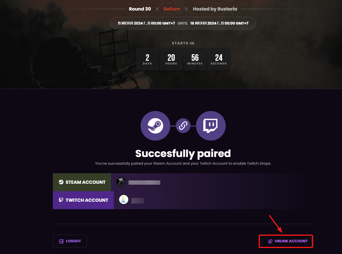 Если вы ранее приобретали предыдущие раунды твича и не помните отвязывали ли аккаунт с которого уже забрали все вещи, то на 1 шаге обязательно входите в свой Steam аккаунт.