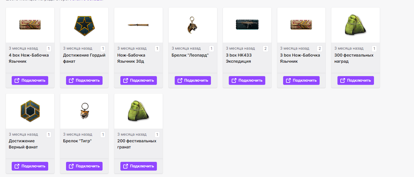 Обратите внимание, что галочки под предметами после подключения не отображаются в инвентаре Twitch.
