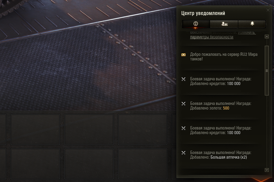 В центре уведомления появляются ТОЛЬКО уведомления о выполненных боевых задачах.