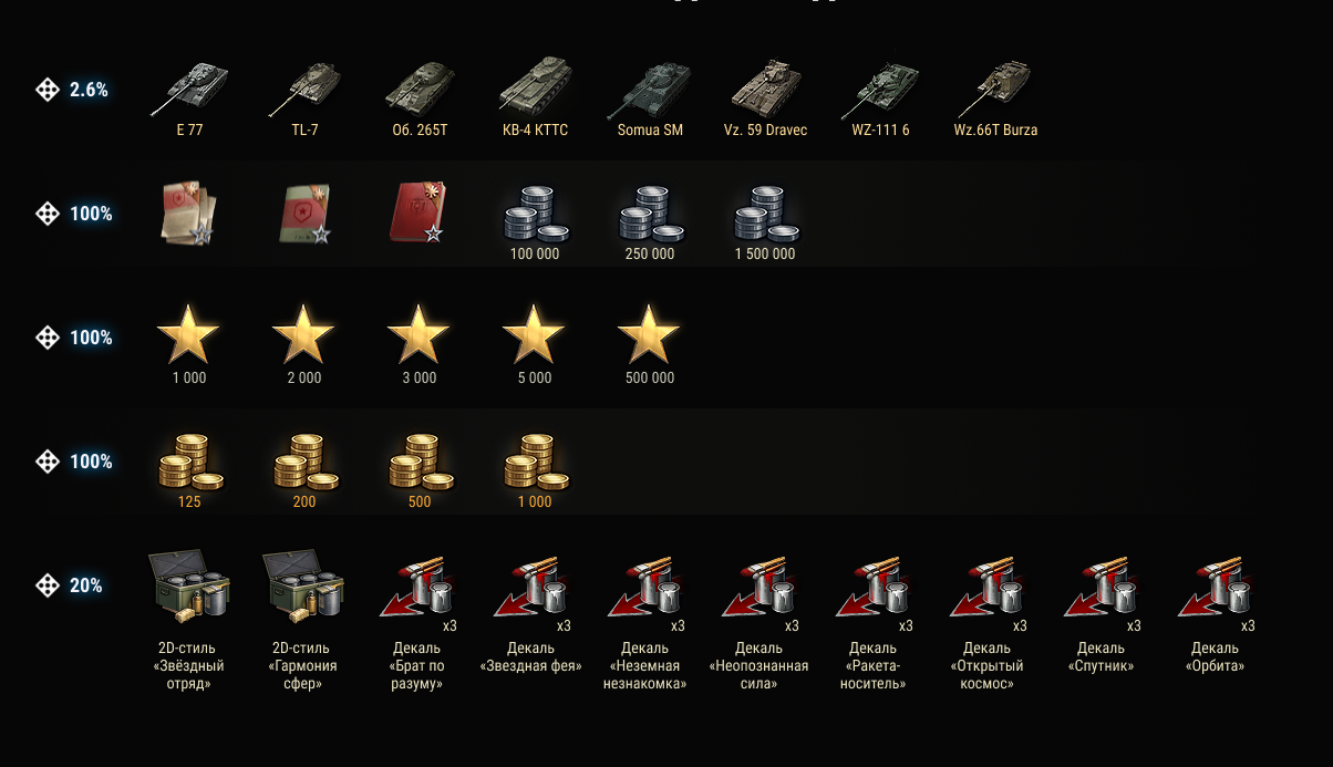 Награды выпадают рандомно и могут повторятся.